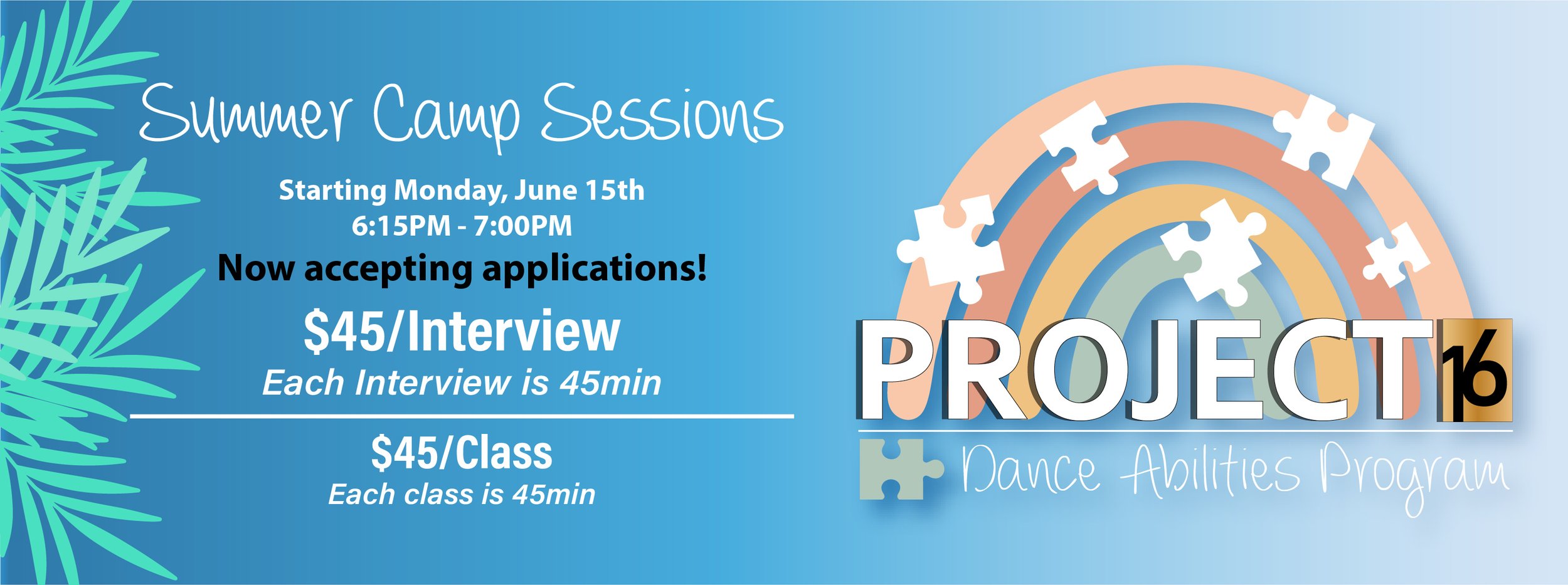 Project 16 is excited to announce our new Dance Abilities Program designed for students with special needs/disabilities from ages 3 - 12. This program is designed to teach movement and dance through music and activities based off of traditional dance classes. The program adapts dance moves and activities for your child’s unique abilities and needs. We tailor each class to incorporate simple instructions that allow your child to express his or her own personality in a successful and stress free environment.